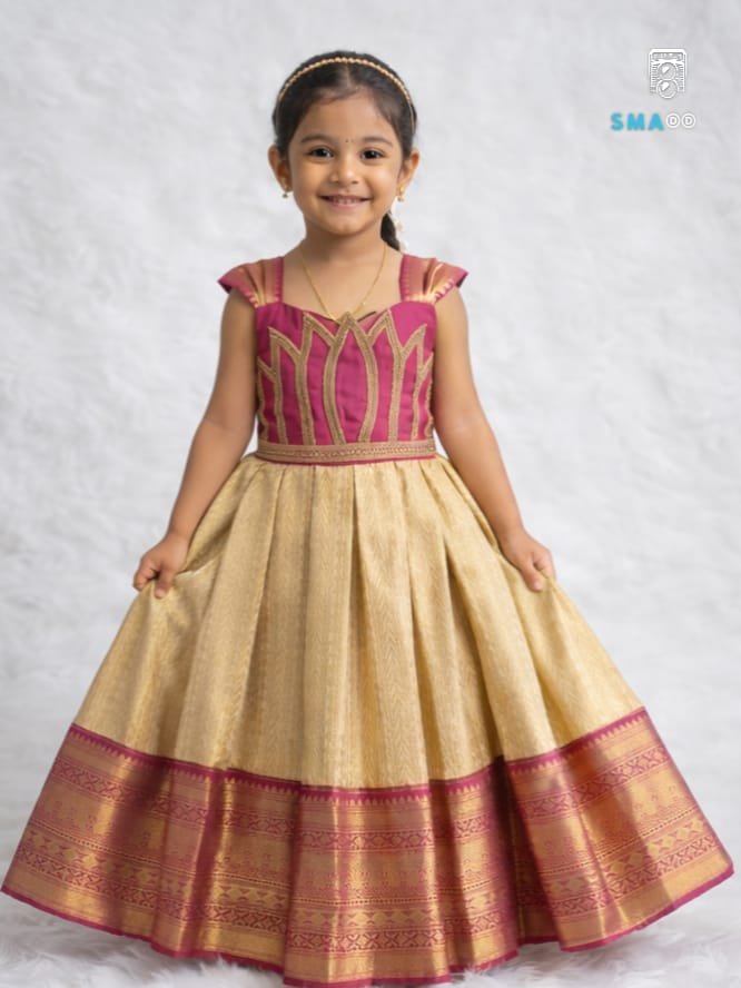 Festive Special Lotus Embroidery Silk Frock for Kids ( Without Fabric | Stiching & Aariwork Only)