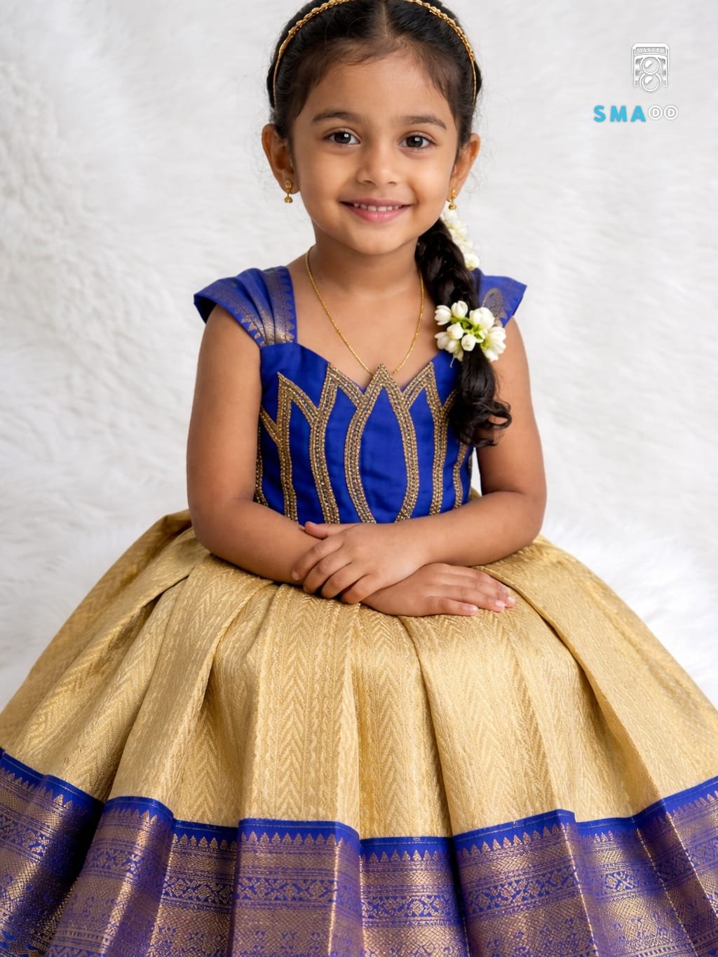 Pair it with cute accessories or traditional jewelry to complete the adorable festive look. This designer piece can also be customized in color, pattern, and size to match your unique preferences